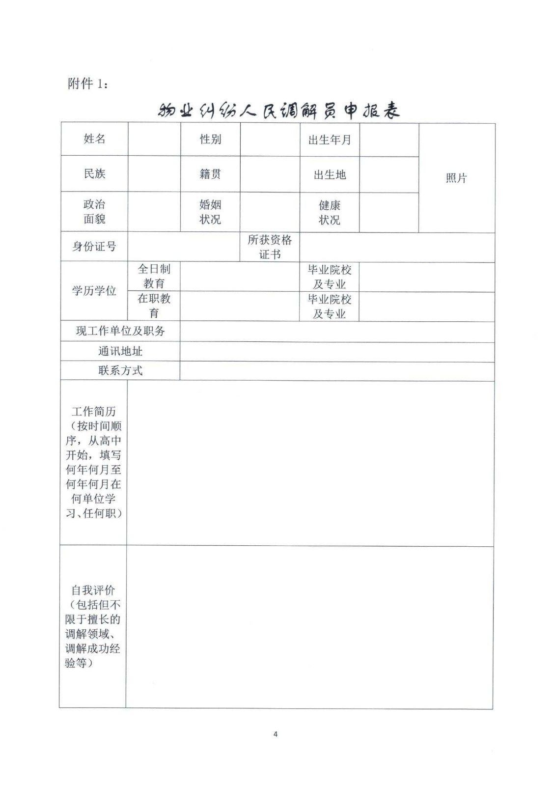附件:物业纠纷人民调解员申报表.doc