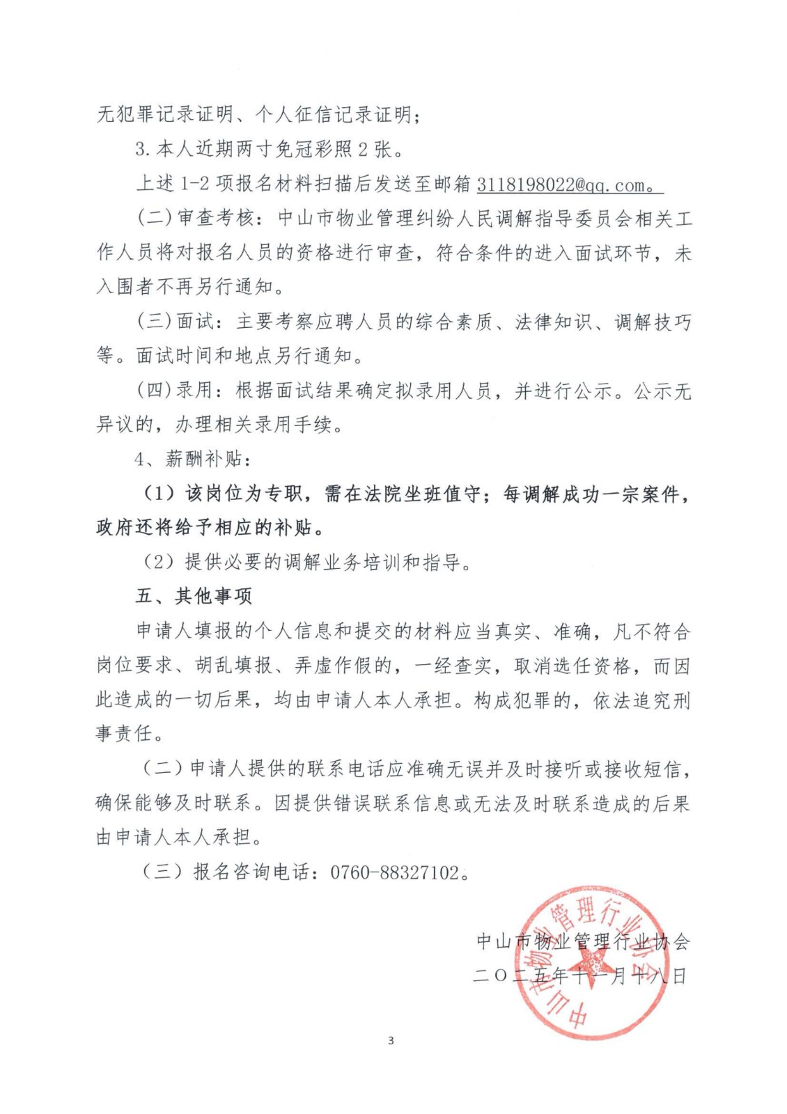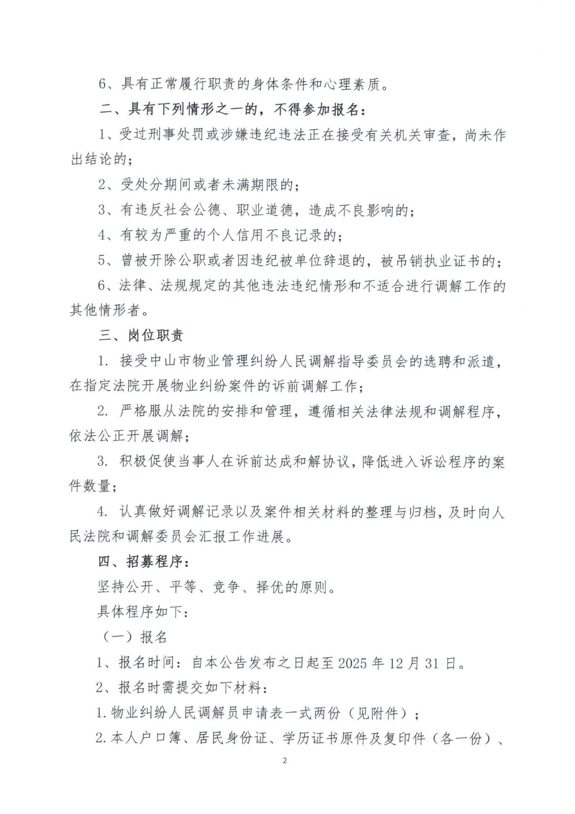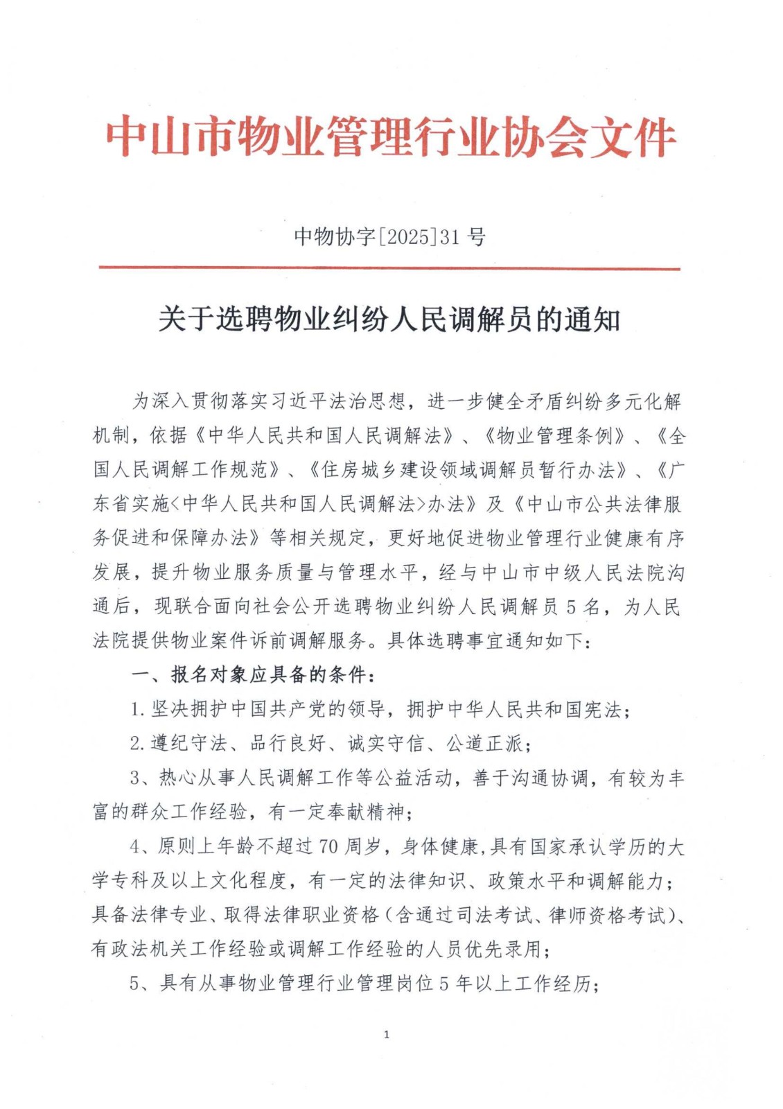 关于选聘物业纠纷人民调解员的通知
